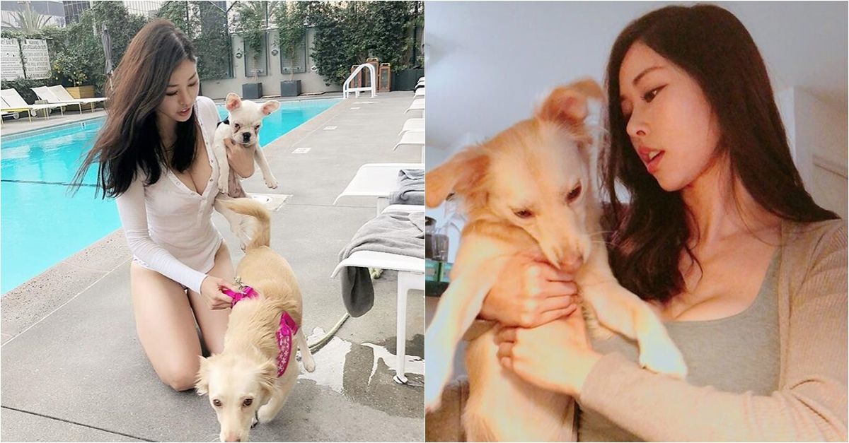這隻狗的主人「巨乳藏不住」!愛狗正妹直接貢獻「兩顆大氣囊」讓狗當床躺 網超羨慕!